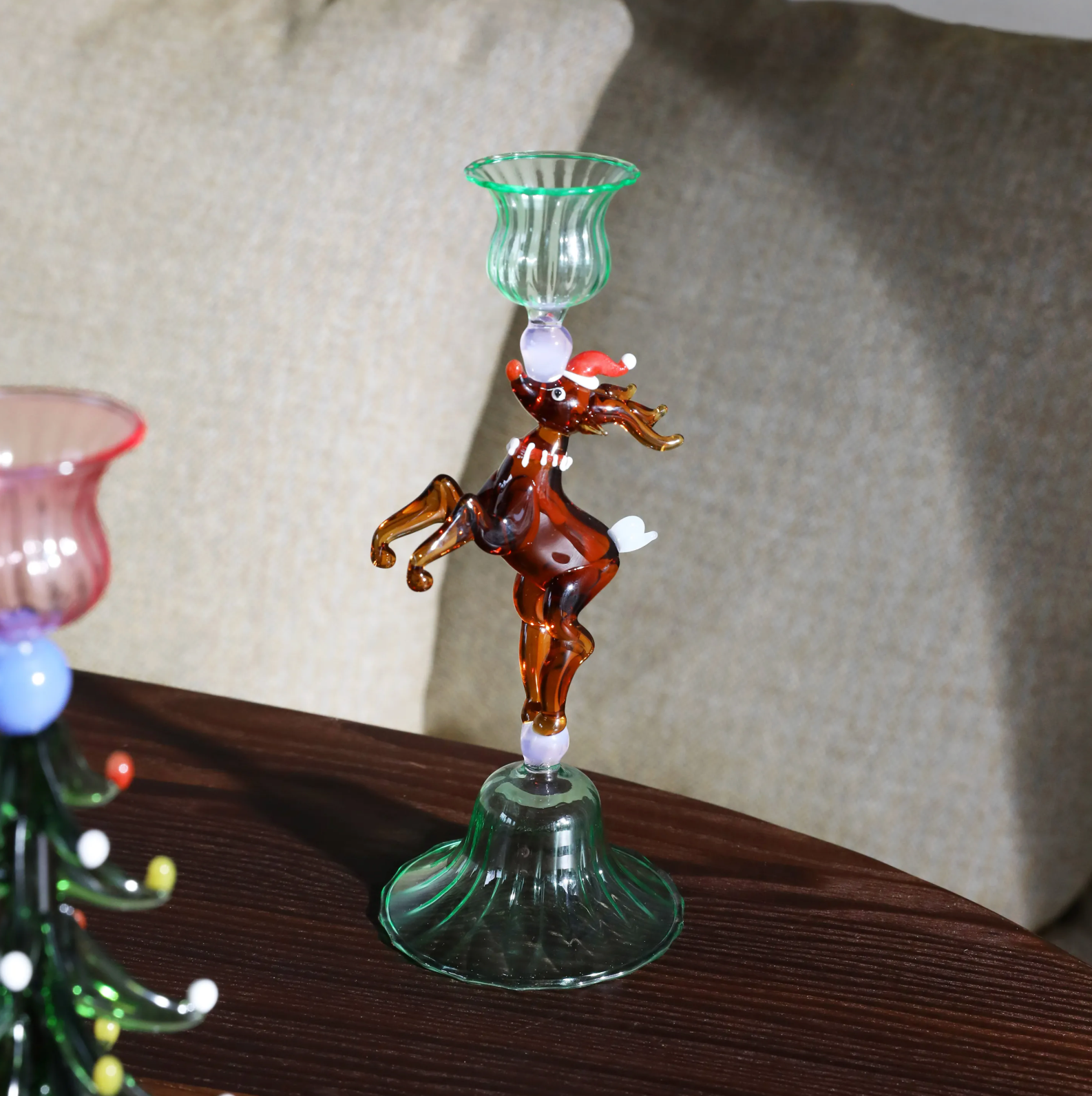 Bring festive charm to your Christmas table with these hand-blown glass Reindeer Candle Holders.