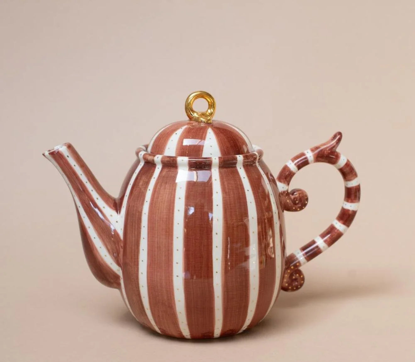 Complete your tea set with this stunning Tea Pot that comes in the dash or stripe design with gold stripe detail on the handle and lid.