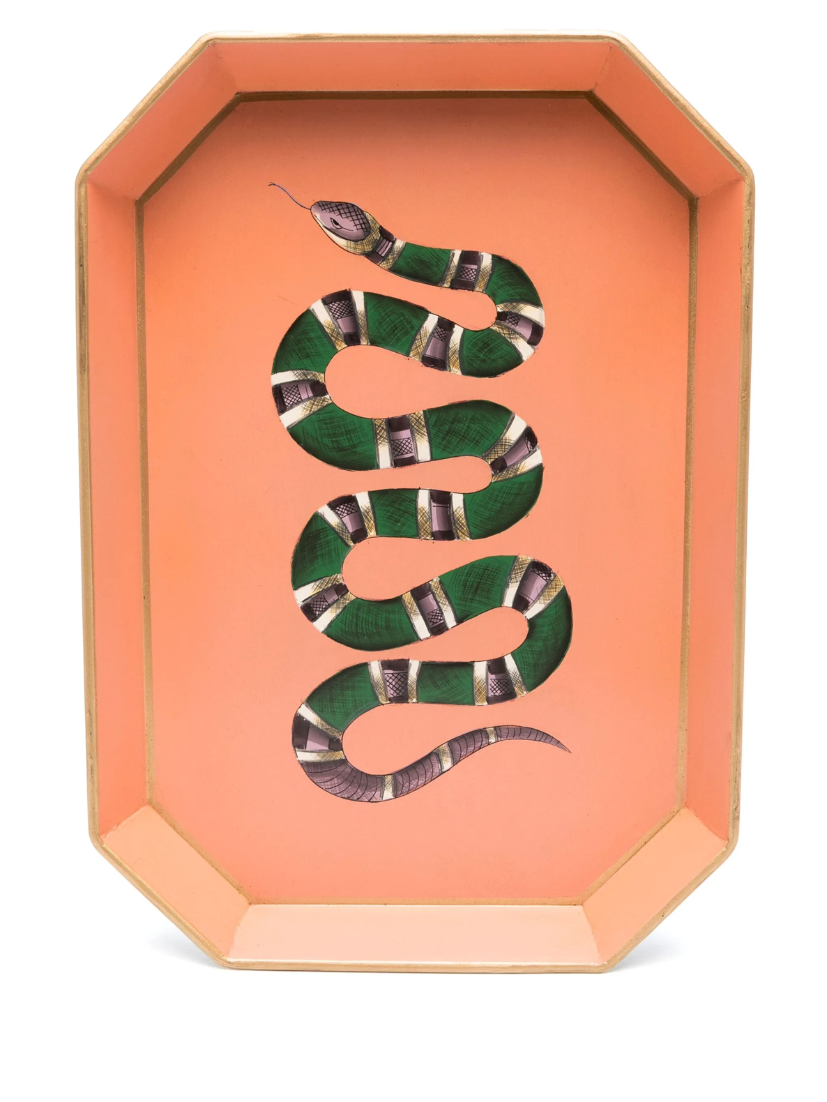 Liven up your tables with this divine hand painted iron tray featuring a stunning Snake on a coral and gold background.